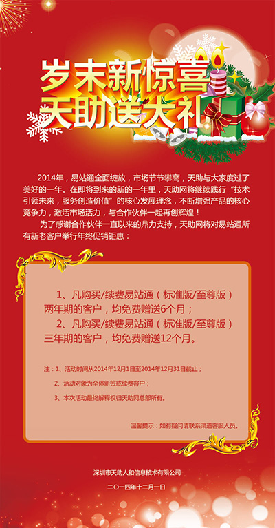 歲末新驚喜 天助送大禮 天助網(wǎng)12月傾情促銷鉅惠喜迎2015?。?!
