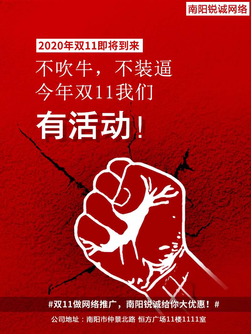 既然淘寶有雙十一,天貓有雙十一,那怎能少得了銳誠網(wǎng)絡(luò)推廣呢,這次雙十一經(jīng)討論,南陽銳誠也開展了一場優(yōu)惠活動(dòng),只要從十月份截止到11月11日24:00前參加網(wǎng)絡(luò)推廣優(yōu)化的客戶,不僅會(huì)送競價(jià)預(yù)存大禮包,百度、360、搜狗、愛采購均可使用!